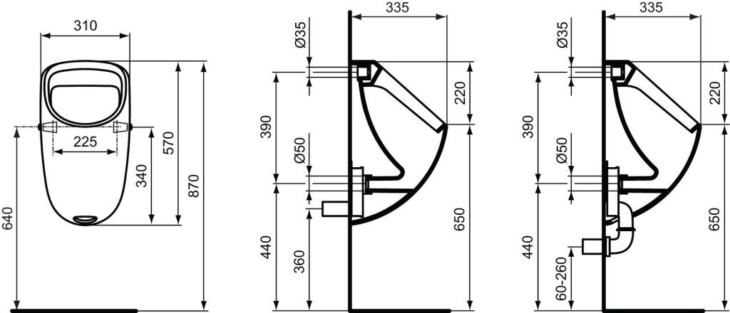 Caractéristiques de l'urinoir suspendu en céramique, avec alimentation interne et évacuation arrière Ideal Standard Connect (E567101) :