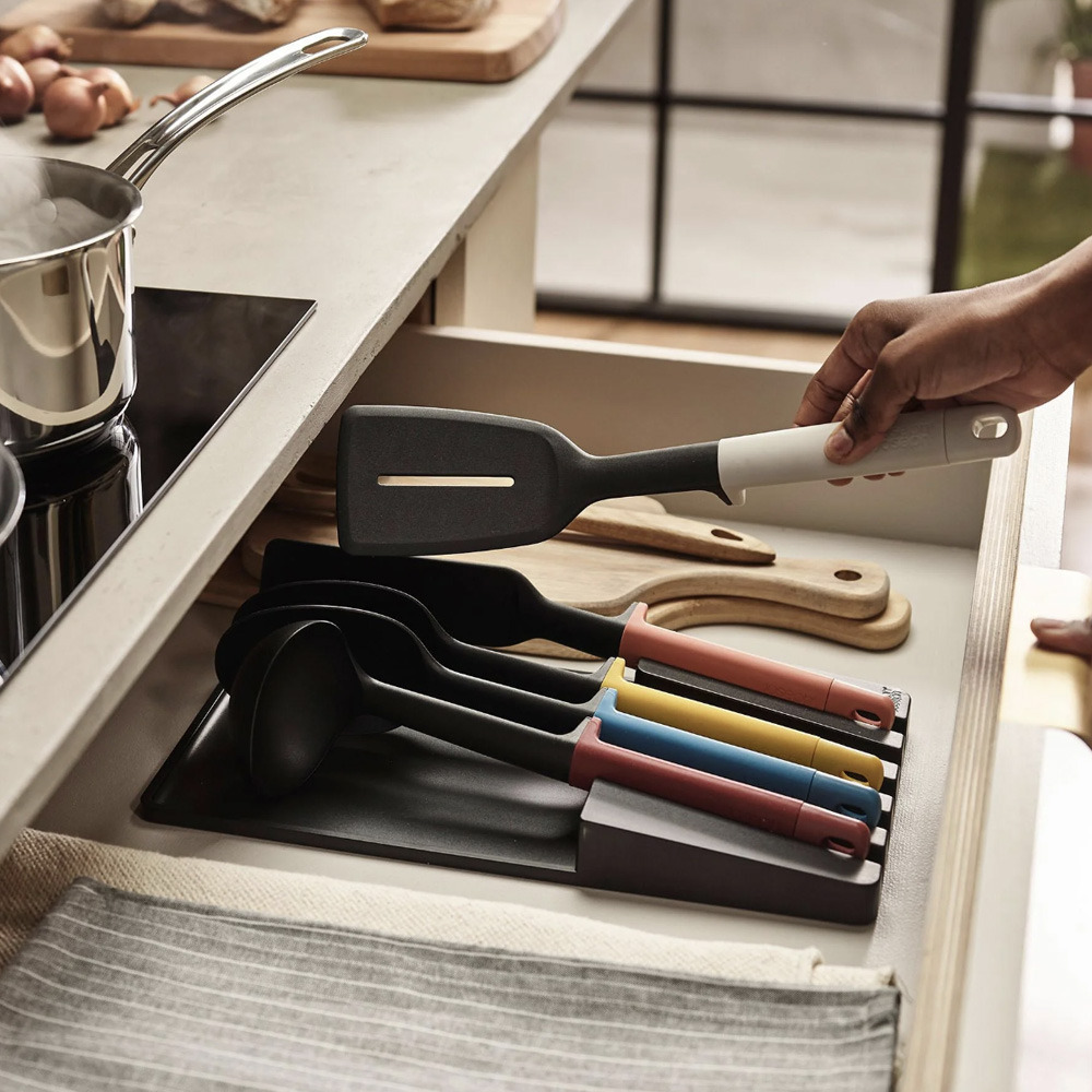 Joseph Joseph Elevate™ Set de 5 couteaux + 5 ustensiles de cuisine avec rangement, noir (10566)