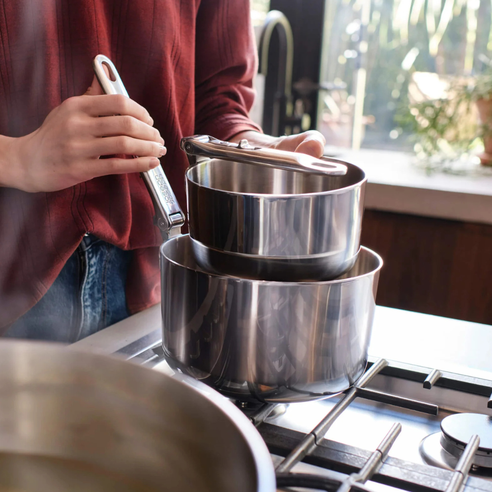 Maximisez l'espace de rangement dans votre cuisine avec cette batterie de 5 pièces, conçue pour la performance et le gain de place. Le design empilable et les poignées pliables réduisent l'espace de rangement jusqu'à 50 %, tandis que la construction haute performance en acier inoxydable à 3 couches offre durabilité et répartition uniforme de la chaleur.