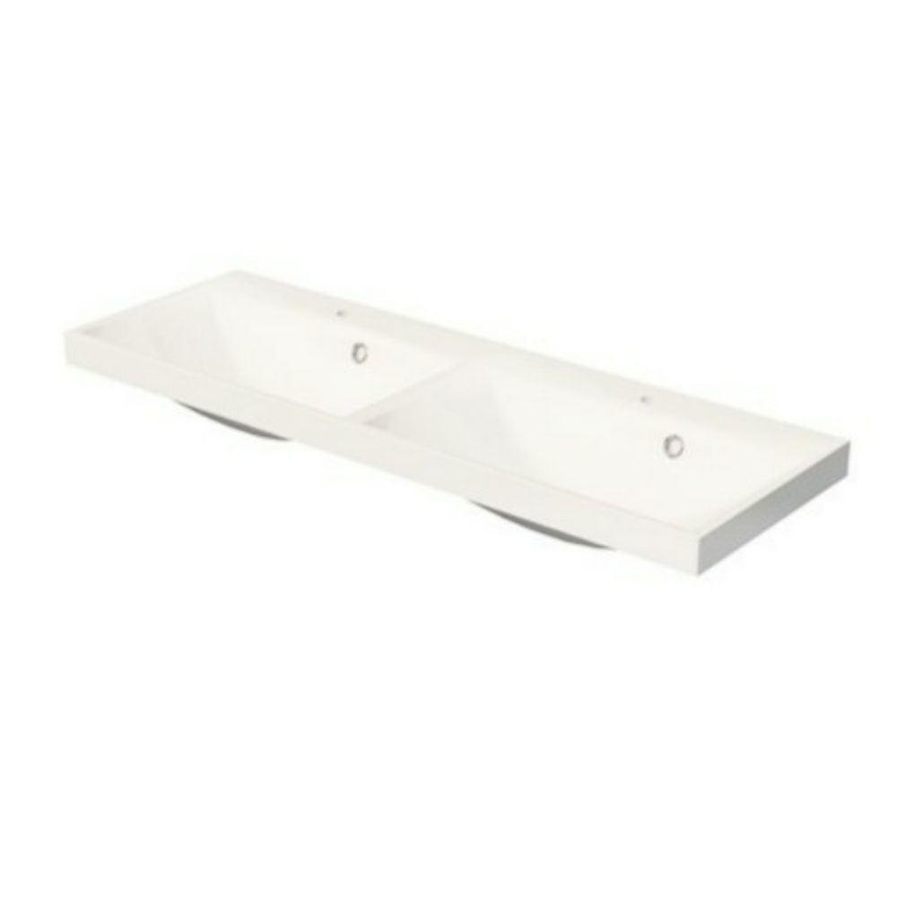 Naturel Cube Way 120x40x5,5 cm double vasque à encastrer en marbre coulé avec deux trous pour robinetterie, blanc brillant (CU212050)
