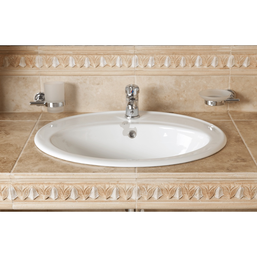 Siko Multi 55x47,5 cm vasque à encastrer en céramique avec un trou pour robinet au milieu, blanc (1690NEW)