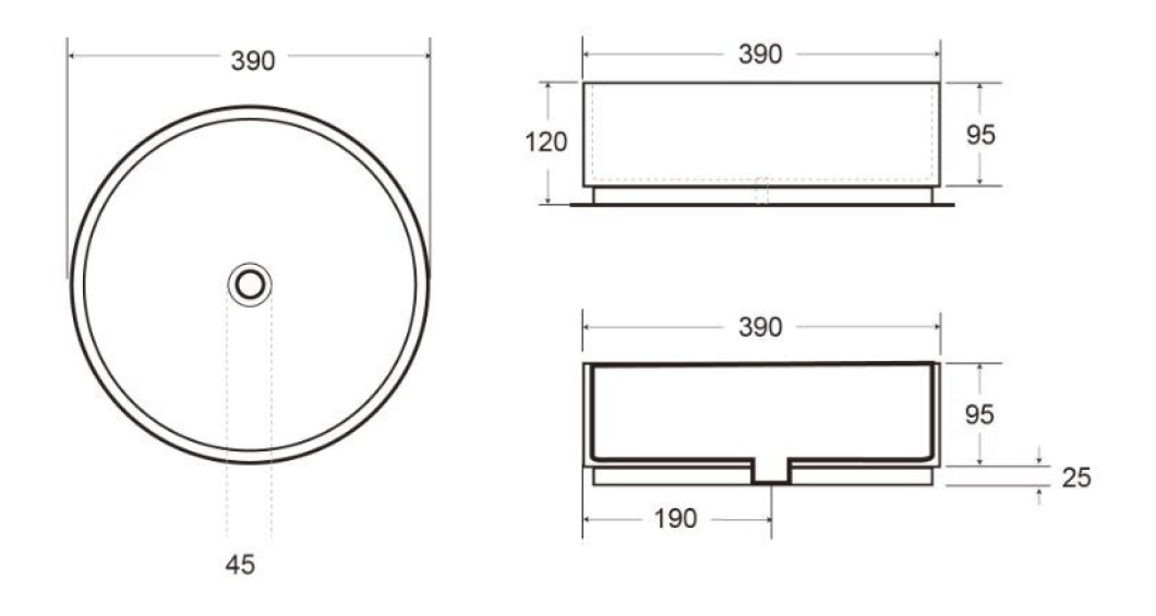 - Type de produit : vasque à poser sans trop-plein