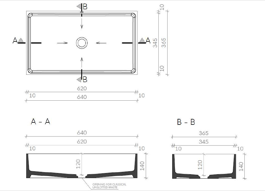 Caractéristiques de la vasque à poser 64x36,5 cm anthracite mat sans trop-plein Triomini by Gravelli Cemento :