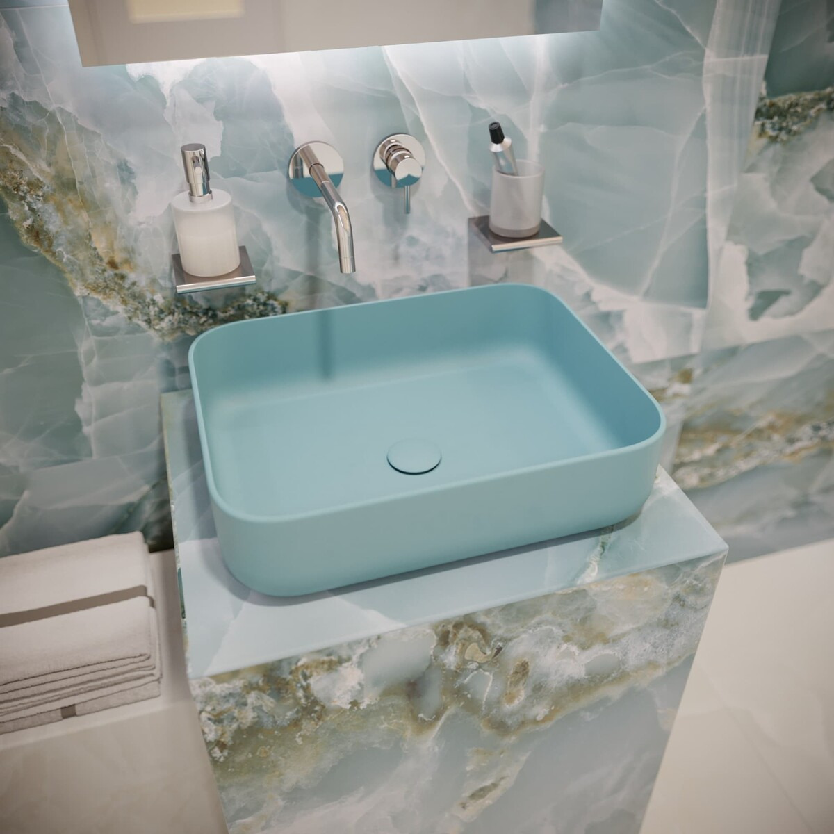 Les lavabos à poser Infinitio sont fabriqués différemment des lavabos en céramique standard. Dans leur production, il est nécessaire d'utiliser un matériau différent et une température de cuisson beaucoup plus élevée. Grâce à cela, il est possible d'obtenir une paroi plus mince et de conserver, en même temps, toutes les bonnes propriétés de la céramique.
