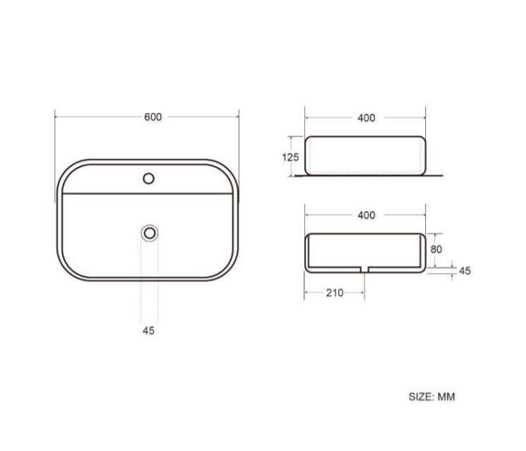 Caractéristiques de la Vasque à poser 60x40 cm, sans trop-plein, avec trou pour robinetterie, Noir mat, Swiss Aqua Technologies Infinitio (SATINF6040BKM) :