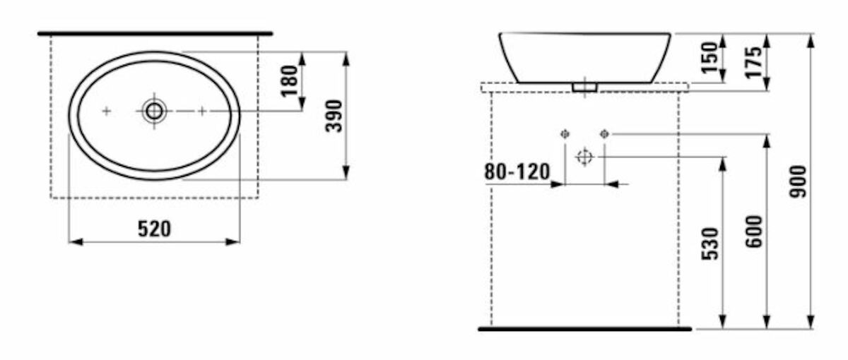 Caractéristiques de la vasque à poser sans trou pour robinetterie, avec trop-plein, 520x390mm, Blanc, Laufen Pro (H8129640001091) :