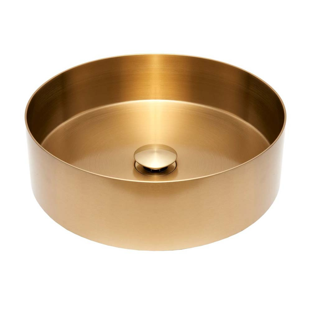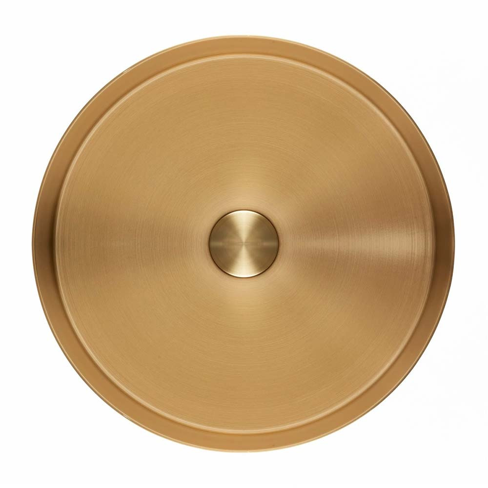 Caractéristiques de la vasque à poser en Acier inoxydable, 38 x 38 x 11 cm sans trop-plein + Bonde, or brossé (SATAUR3838BG) :