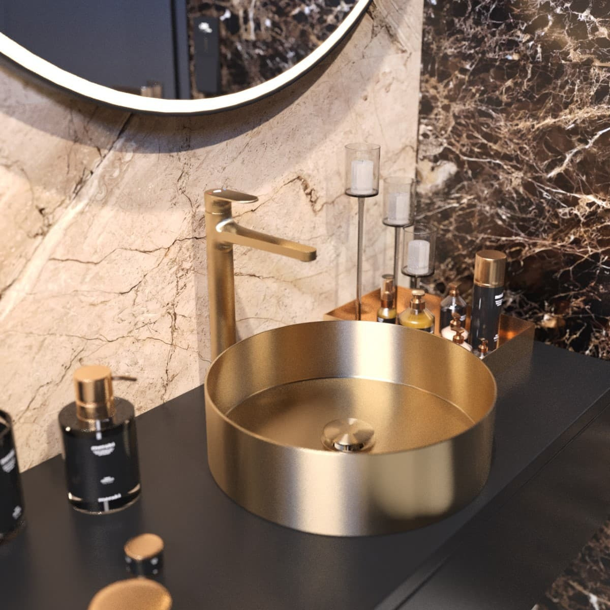 La vasque à poser en acier doré inoxydable à la finition brossée est un choix idéal pour une salle de bain moderne et esthétique. Son design transformera votre salle de bain en un espace raffiné et singulier. Son rendu minimaliste s'intègre à de nombreux styles de salle de bain. Qu'il s'agisse d'une salle de bain au caractère moderne chic ou au charme industriel, la vasque Aurum SATAUR3838BG vous permettent de créer le style désiré pour votre pièce.