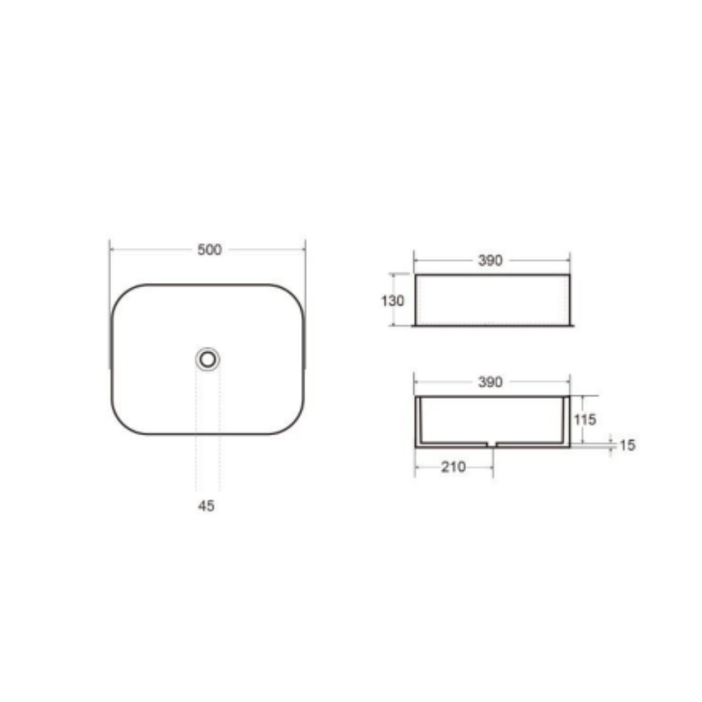 Caractéristiques de la vasque à poser Infinitio 50 x 39 x 13 cm sans trop-plein, blanc (SATINF5039)