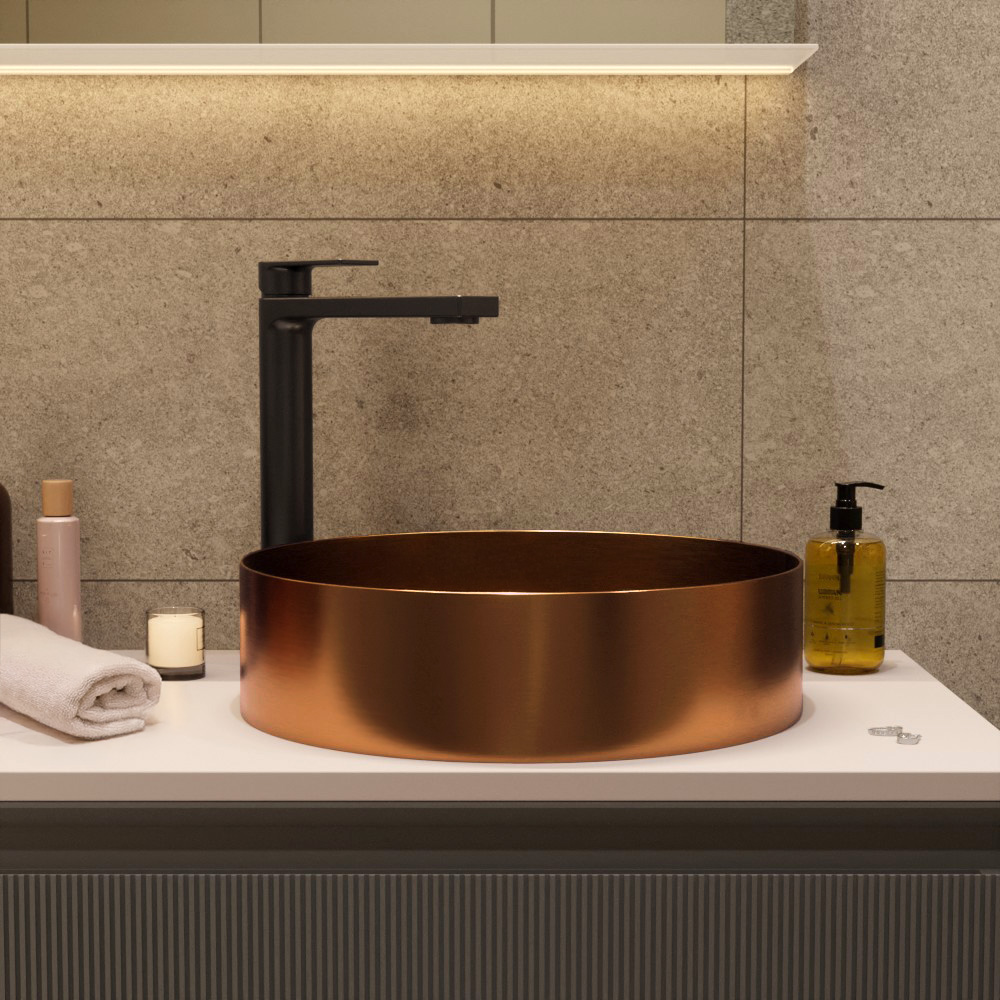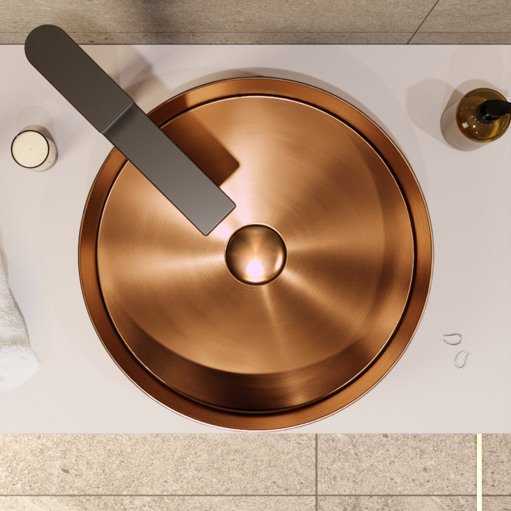 La vasque à poser en acier inoxydable de couleur cuivre aux finitions brossées se révèle comme un choix optimal pour une salle de bain à la fois moderne et esthétiquement plaisante. Son design métamorphosera votre salle de bain en un espace à la fois élégant et distinctif.
