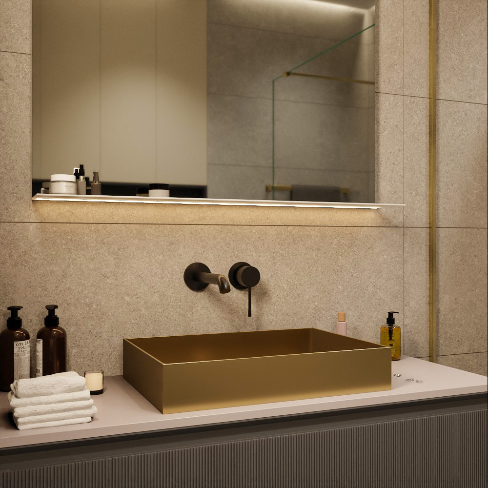 Ceramia Timeless Vasque à poser en Acier inoxydable 304, 55x38x11cm sans trop-plein + Bonde, Or brossé PVD