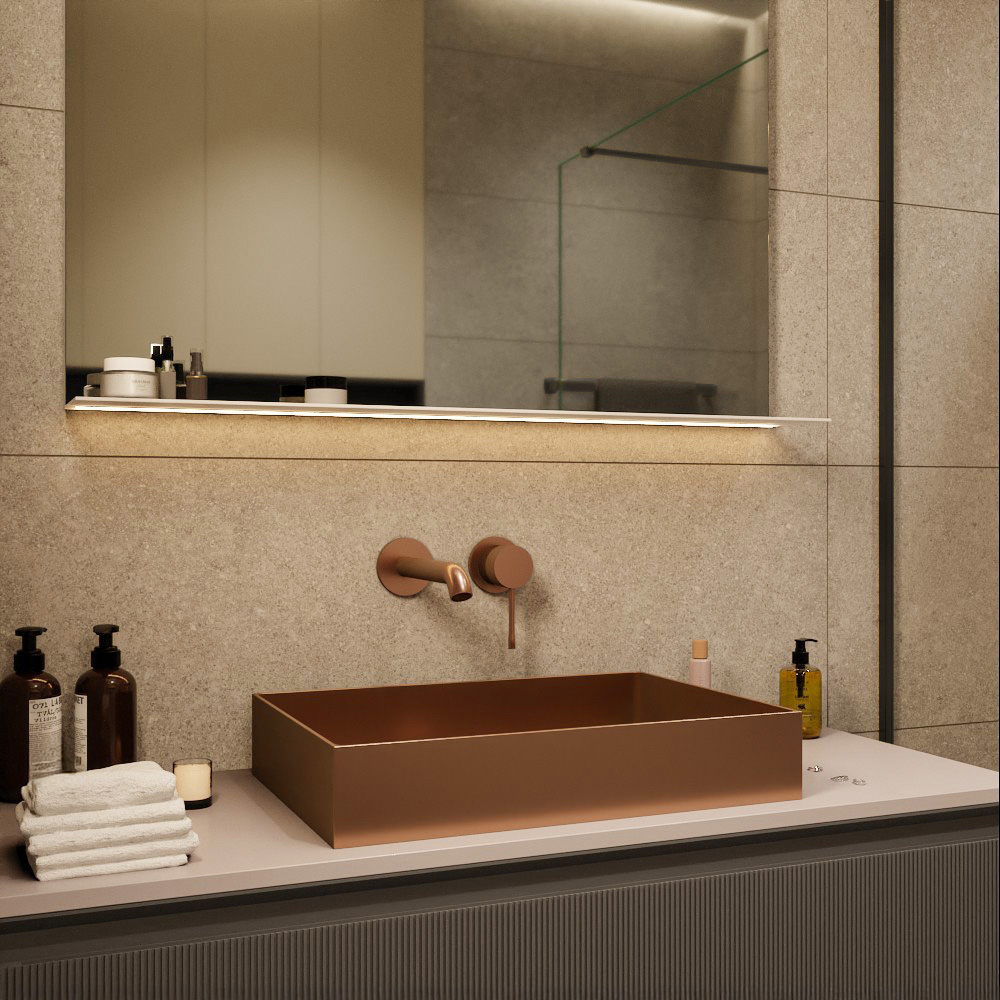 Ceramia Timeless Vasque à poser en Acier inoxydable 304, 55x38x11cm sans trop-plein + Bonde, Cuivre brossé PVD