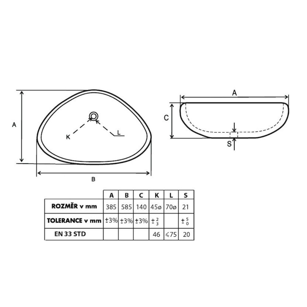 Glacera Vasque design à poser Glacera Vallone 58,5x38,5 cm, sans trop-plein (VA5838)
