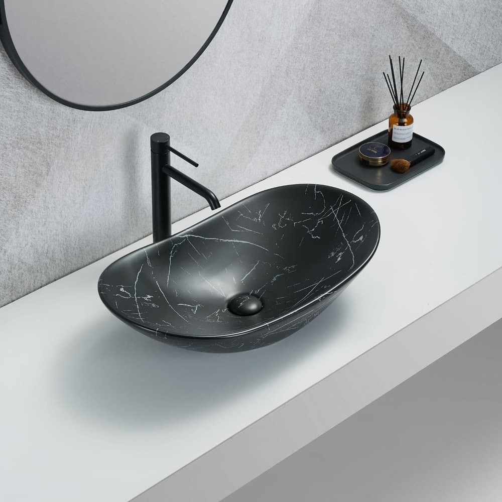 Glacera SAT Infinitio lavabo à poser 61,5x36 cm marbre noir mat, sans trop-plein (SATINF61536MRBKM)