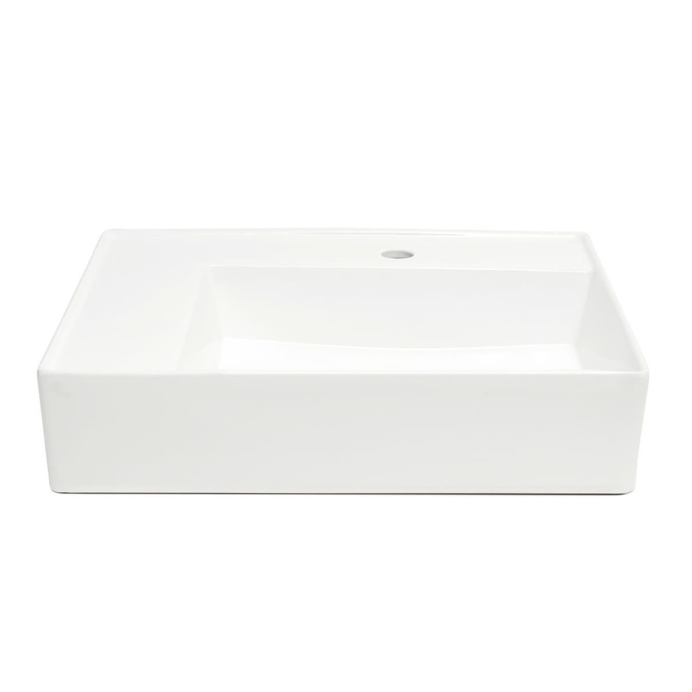Fabriqué en céramique blanche brillante, ce lavabo est conçu pour une installation suspendue, sur meuble ou directement sur plan grâce à sa base polie. Il dispose d’un trou central pour robinetterie et est sans trop-plein, ce qui le rend compatible avec une bonde libre.