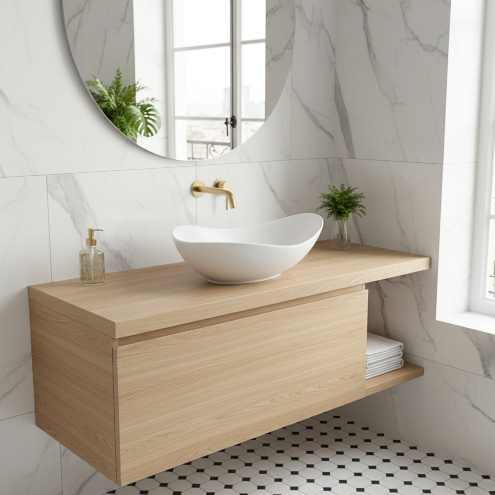 Avec ses dimensions compactes (51 x 38 x 18 cm) et son poids maîtrisé, elle s’intègre facilement dans tous les espaces, même les plus restreints. Elle est compatible avec les meubles et les robinetteries standards.