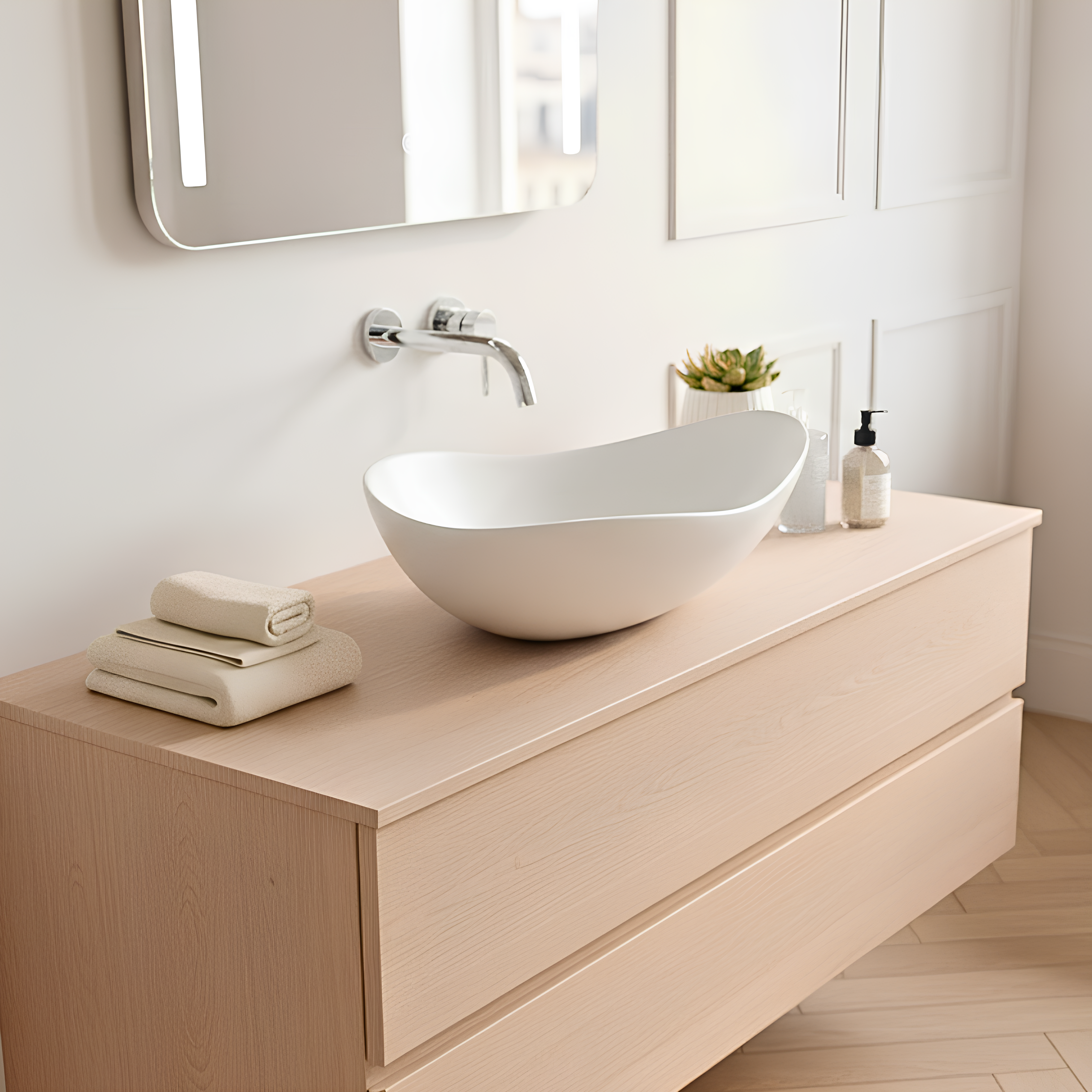 Sans trop-plein, elle offre une esthétique pure et s’associe parfaitement avec une bonde libre ou clic-clac (non incluse). Son installation à poser est simple et rapide, idéale pour les projets de rénovation ou les créations sur mesure.