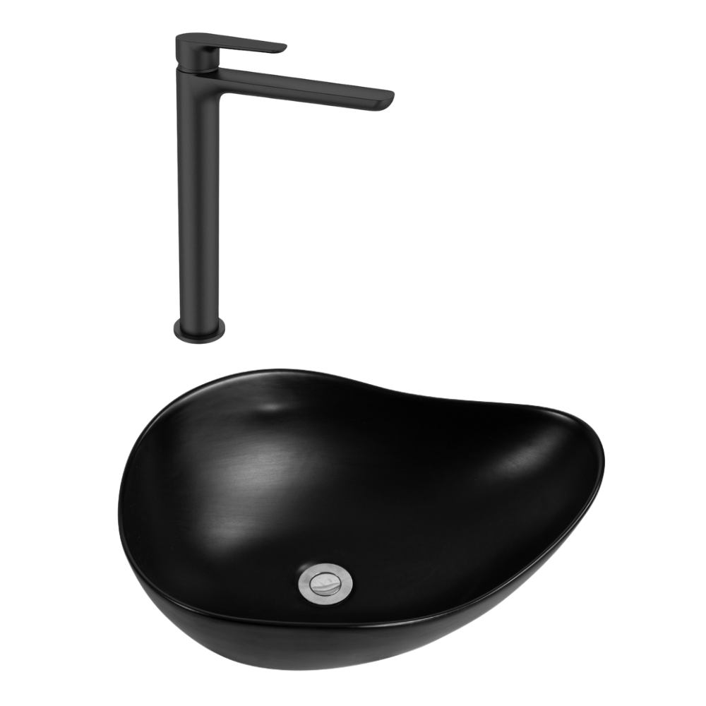 Ceramia PixL 51x38x19 cm vasque à poser + Swiss Aqua Technologies Mood mitigeur lavabo XL + Ceramia PixL bonde (CEPX505BKMSAT285C)