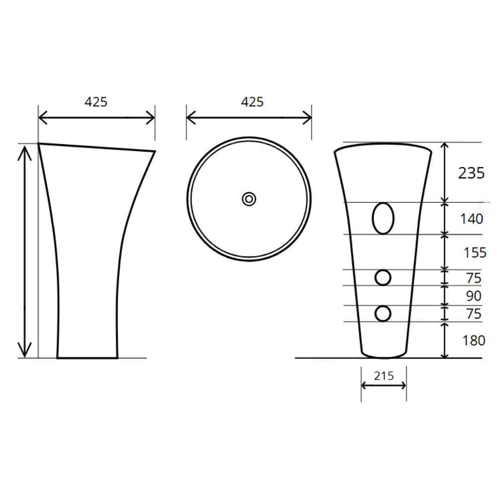 - Dimensions : 42,5 cm de diamètre x 95 cm de hauteur