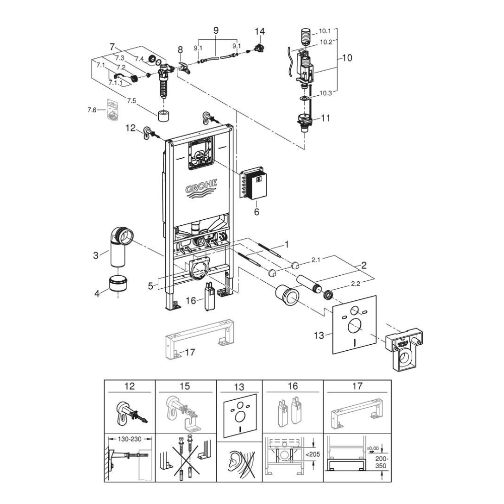 - Grohe Rapid SLX Bâti support WC, 1,13M, avec prise et raccordement pour WC lavant (39596000)