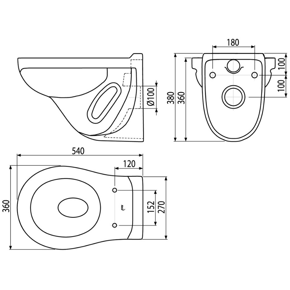 Caractéristiques de la Cuvette suspendue avec bride, rinçage profond, Alca (WC ALCA) :